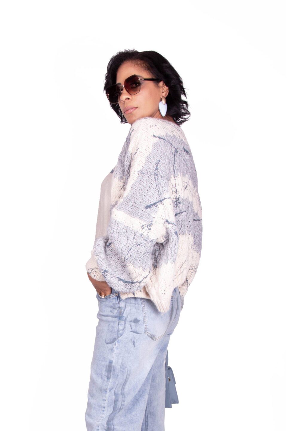 CARDIGAN AZZURRO E BIANCO BENNY