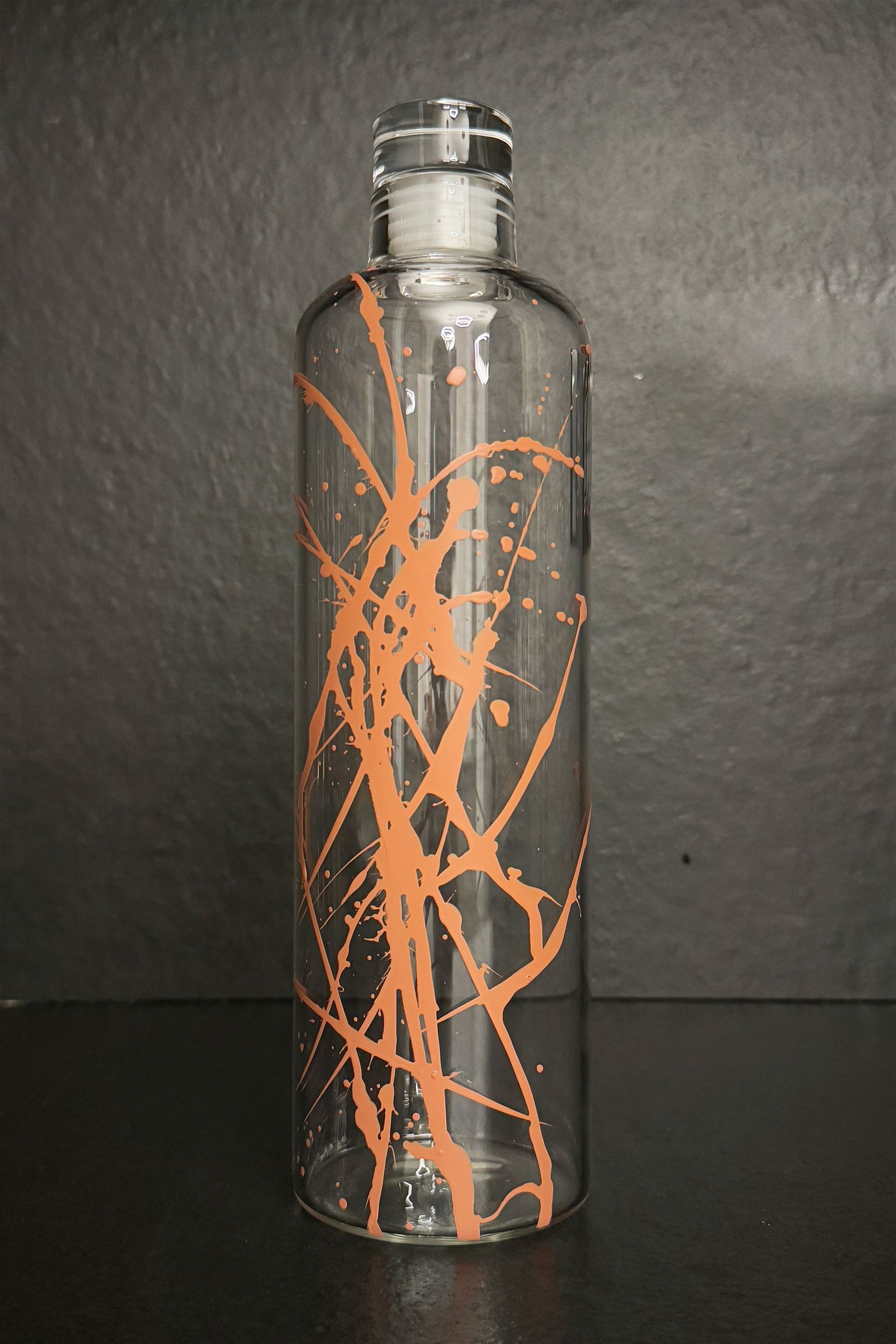 Bottiglia realizzata in vetro borosilicato trasparente con tappo con guarnizione.