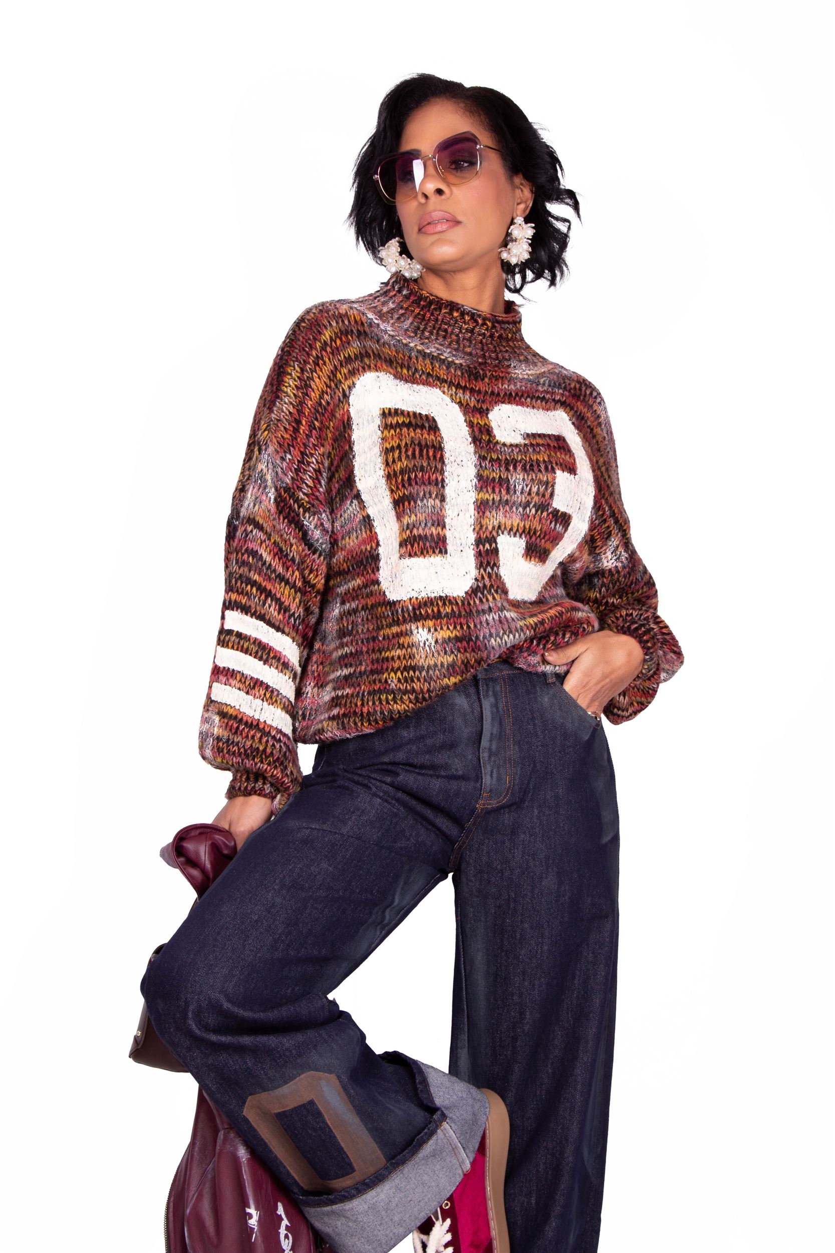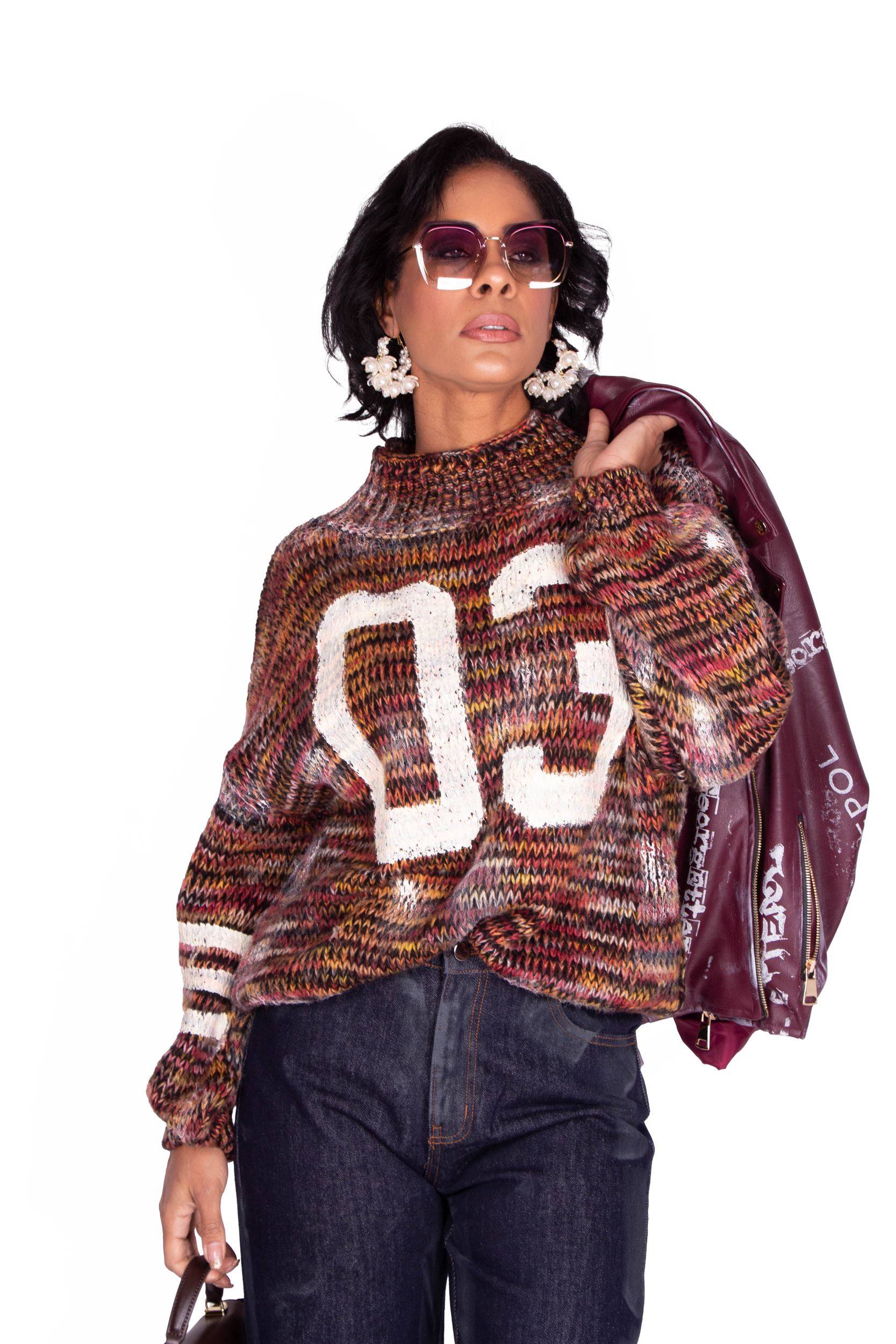 MAGLIONE MULTICOLOR CON COLLO ALTO.